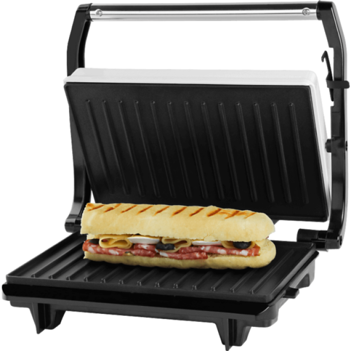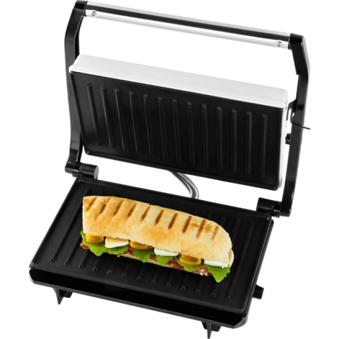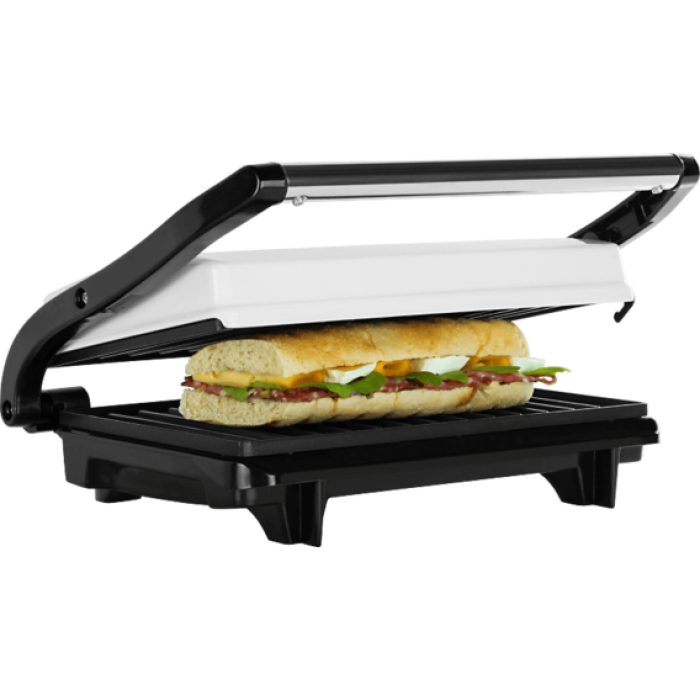 Нагревательные пластины подходят для приготовления: панини, запеченных тостов, мяса, овощей. Лакированный белый гриль-панини.Термоизолированная ручка. Блокировка нагревательных пластин. Индикатор работы. Нескользящие ножки. Возможность хранения в вертикальном положении.