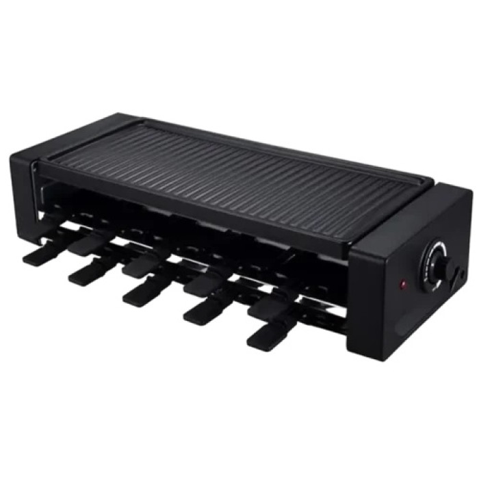 Пристрій має компактні розміри робочої поверхні 52х23 см, що дозволяє готувати одразу кілька порцій. Корпус раклетниці виконаний із міцного пластику, а нековзні ніжки забезпечують стійкість на будь-якій поверхні. Довжина шнура електроживлення 2 метри дозволяє зручно розмістити пристрій на кухні чи столі. Чорний колір корпусу надає раклетниці стильного і сучасного вигляду, що гармонує з будь-яким інтер'єром.