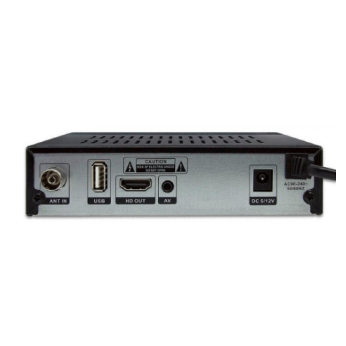 Разъемы::LNB IF input – вход спутниковой антенны HDMI – цифровой HD-видео/аудио выход AV-выход – аналоговое подключение телевизора Вход ИК приемника RS 232 – подключение к COM-порту компьютера (через переходник) 1 х USB 2.0 – подключение внешних USB-накопителей, адаптеров WiFi/3G/4G/LAN