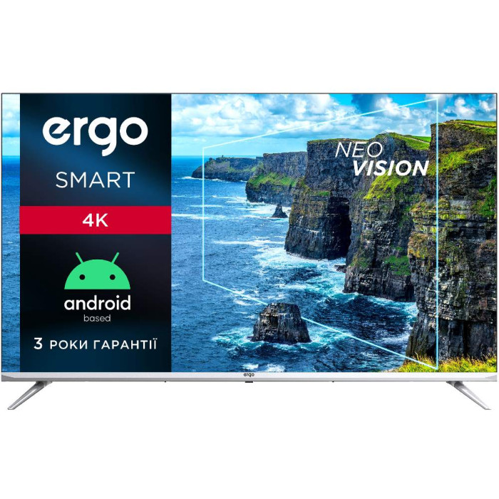 ERGO 43DUS7000 - бюджетний 4К-телевізор для повсякденного домашнього використання. Виробник потурбувався про можливість перегляду цифрового телебачення мовних стандартів DVB-C, DVB-T2, DVB-S2, а також мультимедійного контенту з знімних USB-накопичувачів. На чолі 6,3-кілограмової конструкції з «безрамковий» дизайном перебуває 43-дюймова ADS-панель дозволом 3840x2160 пікселів з 60-герцовой частотою оновлення, 8-мілісекундной швидкістю відгуку, контрастністю 1200: 1, яскравістю 300 кд / м2 і заявленою підтримкою HDR.