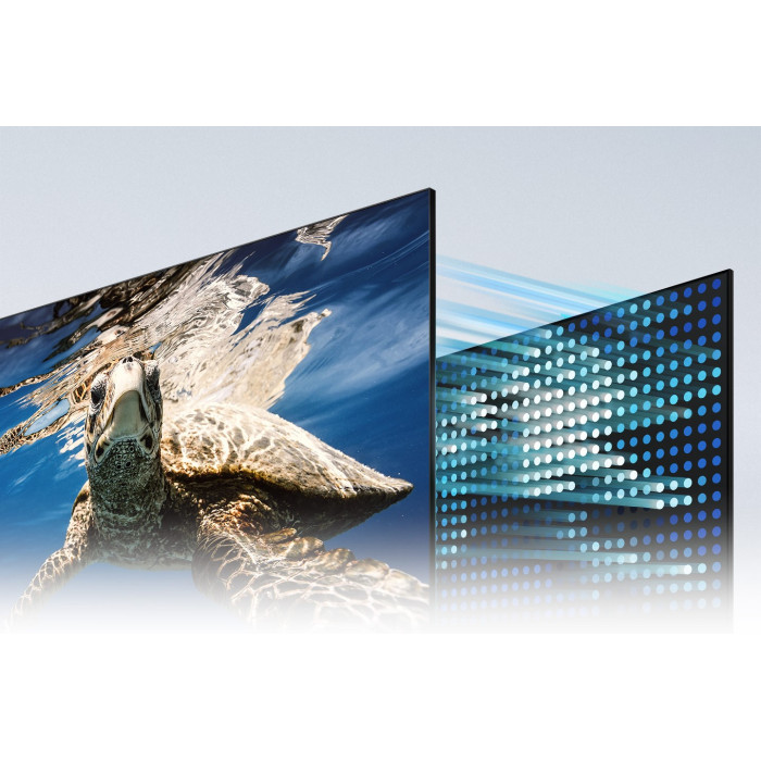 Концентровані зони світлодіодів із точним керуванням відображають надглибокий чорний та чистий білий колір. Quantum Processor 4K забезпечує універсальну продуктивність, інтелектуально оптимізуючи зображення, звук та багато іншого, щоб отримати дійсно захоплюючий досвід перегляду. Технологія квантових точок дозволяє отримати на екрані найкраще зображення із можливих. Зі 100% охоплення кольору, квантові точки вбирають світло і перетворюють його на найбільш захоплюючий колір, який залишається справжнім за будь-якого рівня яскравості. Насолоджуйтесь чудовим кольором, з більш глибокими деталями та контрастом. Технологія Quantum HDR 12x виводить вас на новий рівень HDR. Діапазон яскравості технології Quantum HDR базується на внутрішніх стандартах тестування та може змінюватись в залежності від умов перегляду або технічних характеристик.