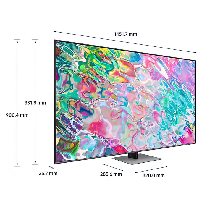 Диагональ::65" , Мощность звука::20 Вт, Размеры без подставки (ШxВxГ)::1452x832x26 мм, Цвет::черный, Разрешение::3840x2160, Тип::QLED, Вес::22,3 кг, Доступ в интернет::есть, Поддержка Wi-Fi::есть, Разъемы::2 x USB 2.0 / 1 x Ethernet RJ45 / 3 x HDMI 2.0 / 1 x HDMI 2.1 / 1 x Satellite In (Main; F-type female) / 1 x Satellite In (Sub; F-type female) / 1 x Optical Audio Out / 1 x Antenna (RF) (female) / 1 x CI+ 1.4, Гарантия::12 мес, Размеры с подставкой (ШxВxГ)::1452x898x290 мм, Дополнительно: :HDR, HDR 10+, Dynamic Crystal Color, UHD Dimming, Motion Xcelerator Turbo, FreeSync, Super Ultra Wide Game View/Game bar, Цифровой тюнер::DVB-C, DVB-T, DVB-T2, DVB-S/S2, Частота развёртки экрана::120 Гц, Операционная система::Tizen, Стандарт VESA::400 х 300, Индекс качества динамичных сцен::3400