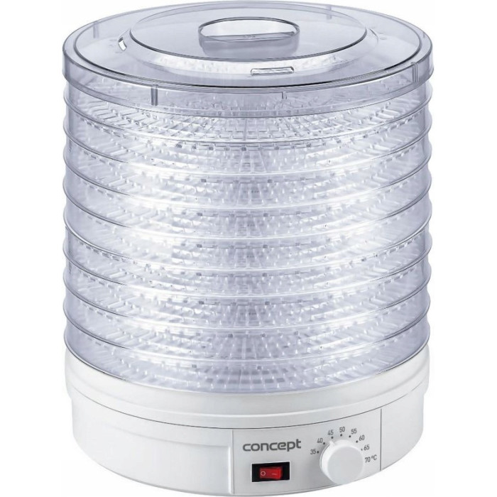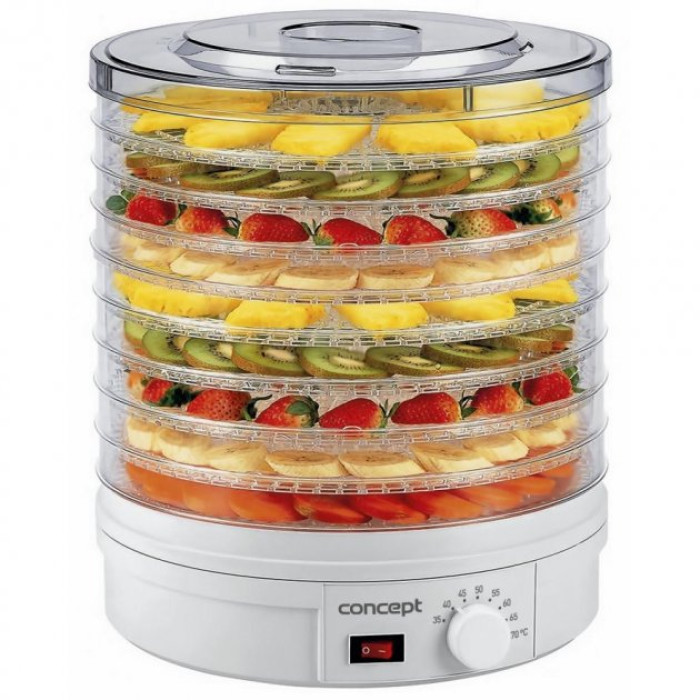 Сушка Concept SO1020 - это стильная сушка из 9 ярусов с возможность расширения до 12. Система сушки - конвективная. Это один из наиболее простых и экономичных сушильных агрегатов, имеет защиту от перегрева и терморегулятор. С сушилкой большой емкости SO 1020 9+ вы можете удобно контролировать температуру от 35 до 70°C. Еще одной особенностью является встроенный вентилятор, который помогает равномерно сушить на всех этажах сушилки.
