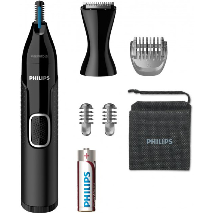 Тример Philips NT5650/16 являє собою пристрій, призначений для ефективної обробки волосся брів, скронь, бороди, вусів, носа і вух. За рахунок того, що ви можете опрацювати таку кількість зон, техніка стала досить затребуваною, тому що одна оболонка замінює кілька інших побутових приладів. Не варто витрачати зайві кошти – придбайте багатоцільову техніку для догляду за обличчям від Philips. Корпус виконаний з урахуванням анатомічних особливостей кисті користувача, тому виробник віддав перевагу ергономічній формі і чіпкому покриттю, яке не дасть упустити триммер під час роботи. Шорсткі елементи також покривають і кнопку активації, щоб власник міг швидко включити і вимкнути триммер, не відчуваючи в цьому труднощів. Повністю чорний дизайн виглядає лаконічно і стильно.