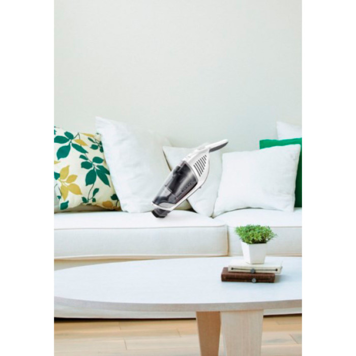 Пылесос Gorenje SVC180FW предназначен для уборки жилых помещений и небольших офисов. Он не использует электроэнергию сети, поэтому в нем в качестве элемента питания установлена батарея на литий-ионной основе. Стандартный аккумулятор на 18 В дает 50 минут беспрерывной уборки. После этого необходимо 6 часов, чтобы восстановить потраченный энергоресурс. Отдельного внимания заслуживает современный подход к щетке. Ее щетина расположена в Х-образном варианте, за счет чего достигается высокое качество сбора мусора, который обыкновенной насадке достаточно сложно захватить. Очищение под вакуумным воздействием происходит с захватом гораздо большей площади, поэтому и время уборки сокращается.