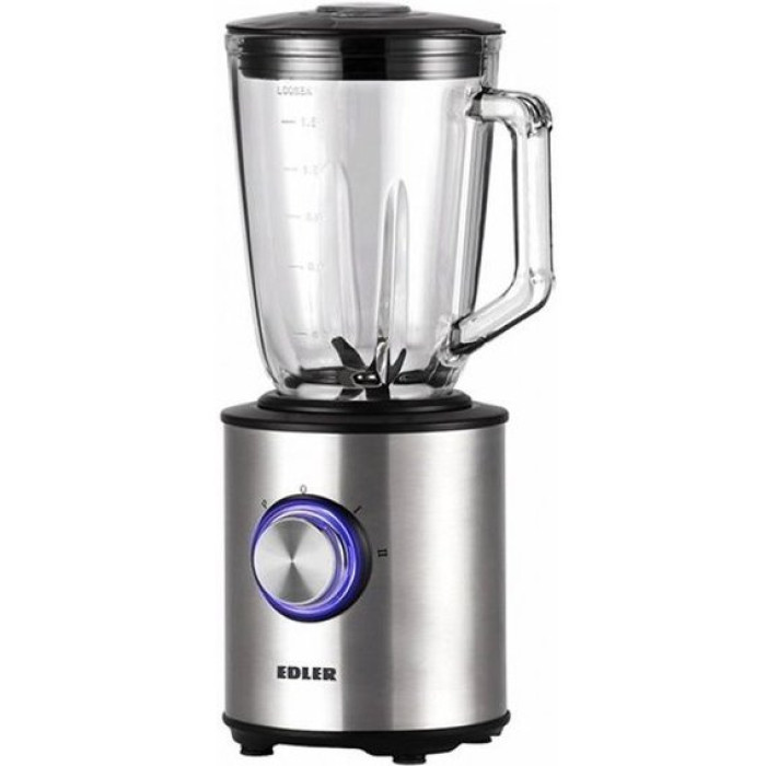 Блендер Edler EDSB-9877 — это стационарный прибор для идеального смешивания. Прибор выполняет свою работу быстро, легко и качественно. Отличная производительность сделает приготовление напитков и блюд комфортнее. Вкусные смузи всего за несколько секунд, полезные фруктовые и овощные коктейли, освежающие фреши со льдом — все это вы сможете ежедневно готовить при помощи мощного стационарного блендера Edler. Блендером просто управлять. Интуитивно понятный поворотный переключатель скоростей на 2 режима и импульсный расположен на корпусе прибора. Измельчитель не будет скользить по рабочей поверхности благодаря ножкам-присоскам. Чаша объемом 1,5 л обладает термоустойчивостью, так как выполнена из стекла.