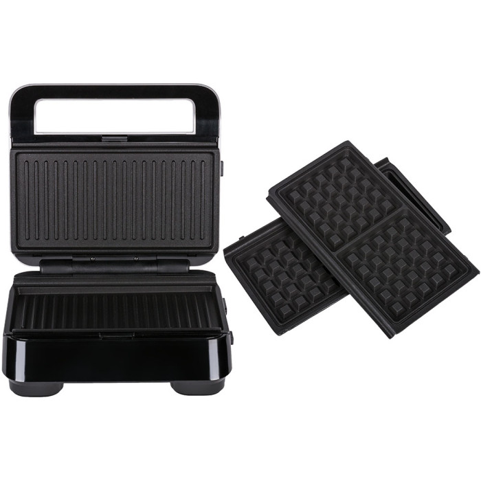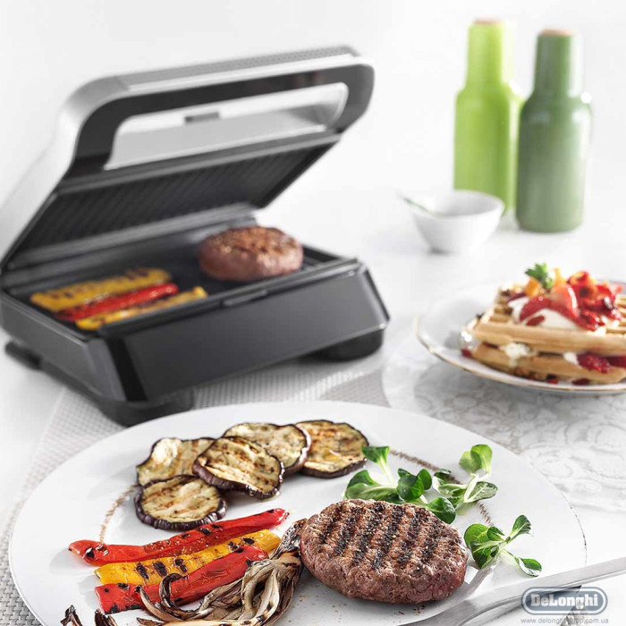 Контактный электрогриль марки ECG – это универсальный прибор для приготовления пищи, который можно отнести к среднему ценовому сегменту. Модель подразумевает возможность открытия на 180 градусов, и в таком сценарии в распоряжении пользователей появляются сразу две зоны нагрева размером 29x23 см кожная. Еще одной особенностью устройства является присутствие сразу двух термостатов, а значит можно независимо регулировать температуру верхней и нижней поверхности. Дополнительную универсальность электрогриль ECG KG 2033 Duo Grill & Waffle получает благодаря комплекту из 4 пластин