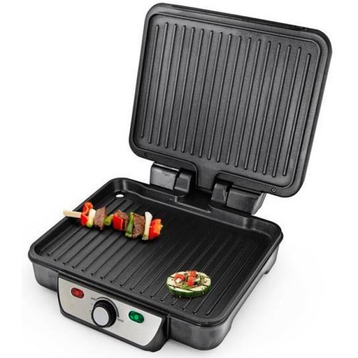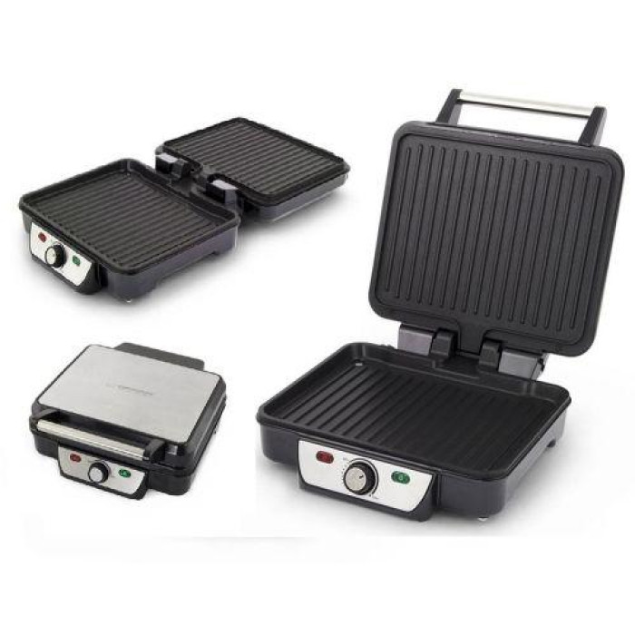 Притискний електрогриль ECG KG 300 Deluxe виготовляється у сучасному дизайні у настільному варіанті. Його корпус виконаний з міцної та довговічної нержавіючої сталі та чорного пластику. Модель потужністю 2000 Вт обладнана двома знімними рифленими пластинами з розміром 27,5х24 см.