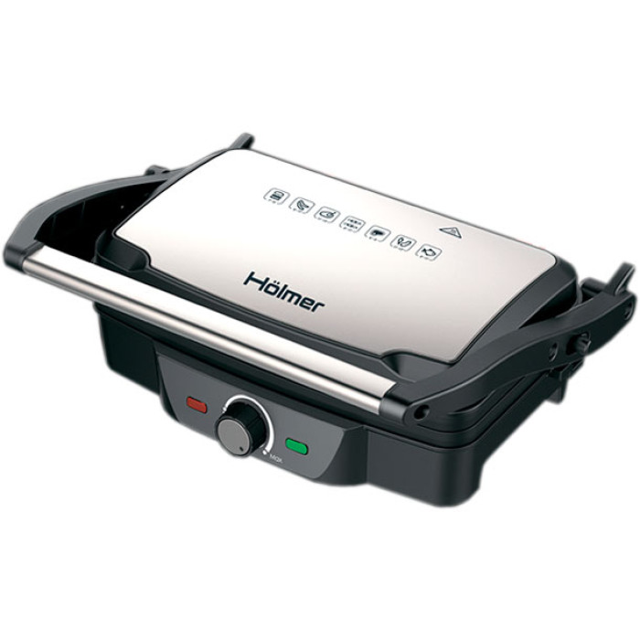 Електрогриль притискної Holmer HCG-160 випускається в стильному лаконічному дизайні в корпусі суворого чорного кольору. Пристрій потужність 1600 Вт оснащено рифленими панелями розміром 28х17 см з антипригарним покриттям. Продукти до такої поверхні не прилипають, а її очищення від харчових забруднень проводиться легко і швидко.