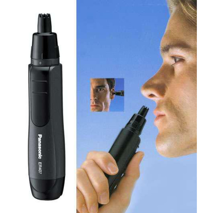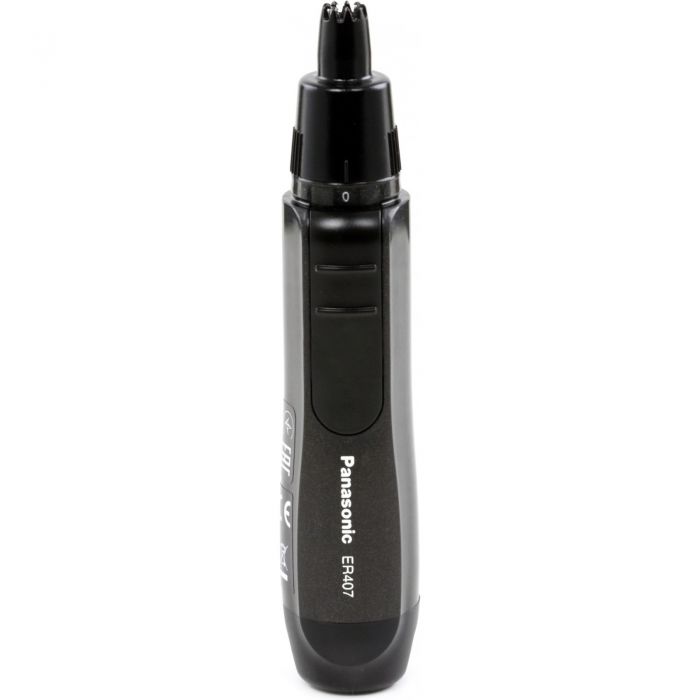 Машинка для стрижки волосся в носі та вухах із системою безпеки. Працює PANASONIC ER-407-K520 від батареї типу АА. Повного заряду достатньо для 90 хвилин безперервної роботи пристрою. Передбачена можливість вологого чищення.