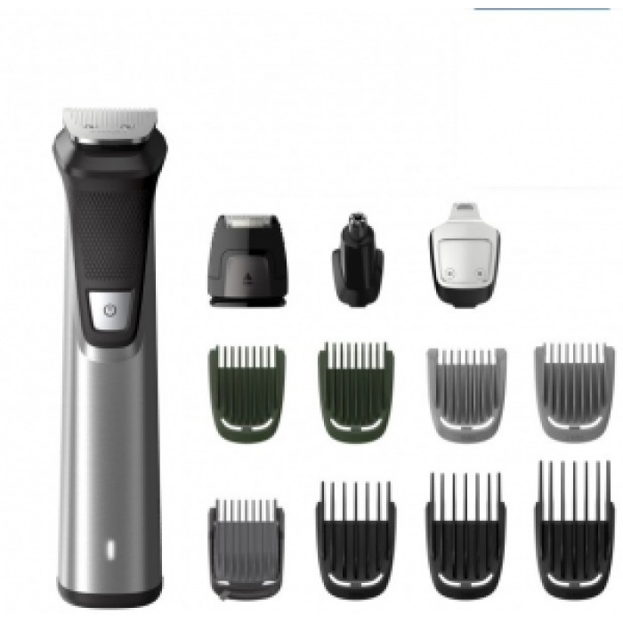 Універсальна машинка для стрижки Philips Multigroom series 7000 MG7735 / 15 виготовлена в стильному ергономічному корпусі, який зручно розташовується в руці. Модель дозволяє виконувати стрижку волосся з рівними лініями окантовки, доглядати за бородою, вусами і скронями, надаючи їм чіткі контури, а також видаляти небажані волосся на тілі, вухах і в носі. Прилад обладнаний ножовим блоком із сталевих і гострих лез і укомплектований 12 різними насадками, за допомогою який можна створювати нові образи для своєї зовнішності.