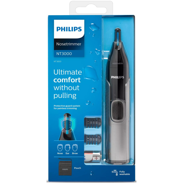 Просте та комфортне порятунок від небажаних волосків у носі та вухах. Перед використанням переконайтесь у чистоті ніздрів; вставте триммер у ніс не більше ніж на 0.5 см і почніть робити акуратні кругові рухи. Перед використанням у вухах переконайтеся, що у вухах немає сірки. При підрівнюванні брів встановіть у пази одну з двох насадок (3 або 5 мм) і з невеликим тиском проведіть триммером проти напрямку росту волосся, щоб підрівняти волоски брів до потрібної довжини.