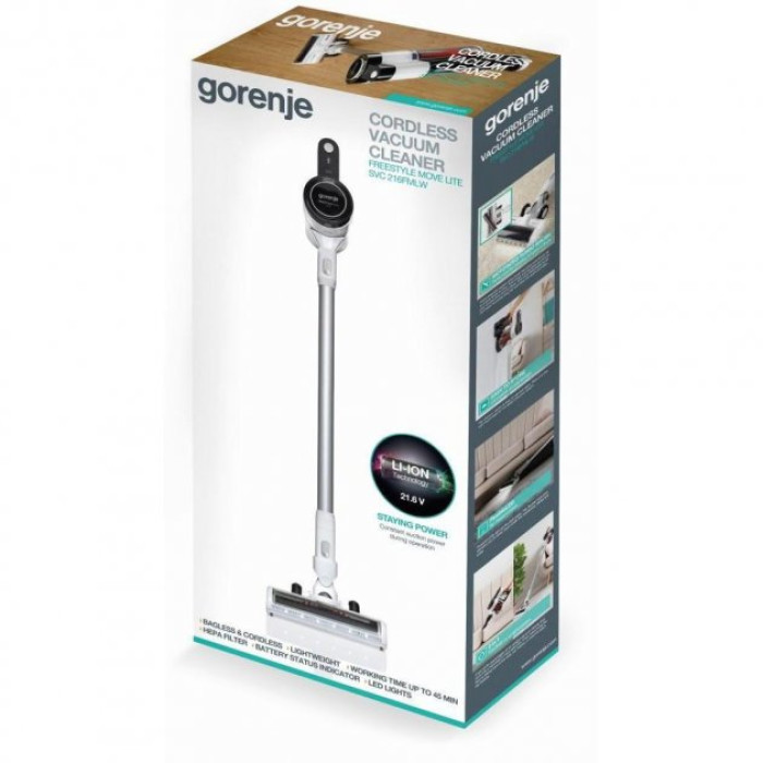 Завдяки потужній літієвій батареї 20000 мАг ви не відчуєте втрату потужності під час прибирання. Навіть при половинній зарядці пилосос працює з максимальною потужністю. Технологічна електрична турбощітка має широкий валик із щетиною для більш ефективного прибирання. Щітка легко прибирає сміття як з твердих покриттів для підлоги, так і з килимів. Для очищення валика щітки легко знімається одним натисканням на кнопку. Гумові бампери на щітці захищають ваші меблі від випадкових ударів. Пилосос просто використовувати і зберігати. Після збирання вставте пилосос у зарядну станцію на стіні, і він завжди буде готовий до збирання.