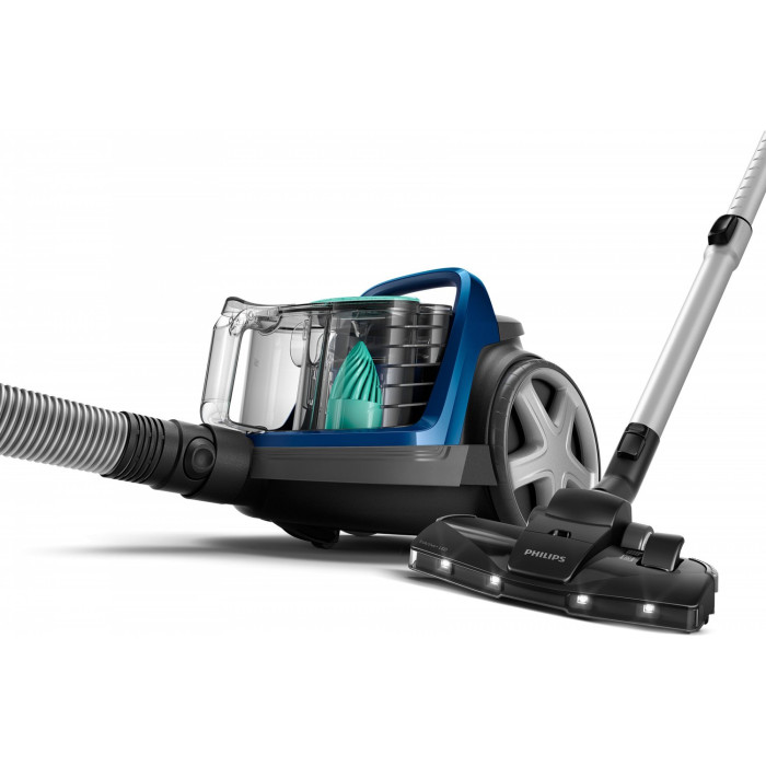 Високопродуктивний мотор 900 Вт забезпечує більше 50 000 об./хв для стабільно потужного та ретельного збирання. Зареєструйте продукт на Philips.com протягом 3 місяців з дати покупки та отримайте гарантію 5 років на двигун. Світлодіодне підсвічування в насадці TriActive+ та висока потужність всмоктування забезпечують збирання 99,9% дрібного пилу. Технологія PowerCyclone 7 забезпечує аеродинамічний дизайн, знижуючи опір повітря та забезпечуючи максимальну потужність всмоктування. Надшвидкий потік повітря в циліндричній камері та унікальні вихідні пелюстки допоможуть відокремити пил від повітря.