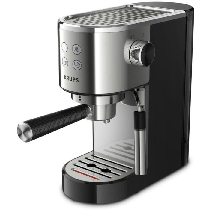Швидкодіюча, надійна і порівняно компактна Ручна ріжкова кавоварка з проточним термоблоком для приготування ароматного Підбадьорливого Еспресо, кавових і кавово-молочних напоїв на його основі. Має елегантний і практичний зовнішній дизайн, який без проблем впишеться в будь-яку сучасну кухонну обстановку. Розрахована на роботу з меленою кавою або чалдами (порційними фільтр-пакетами з меленою смаженою пресованою кавою). Обладнана ручним капучинатором з насадкою панарелло, яка використовується для швидкого збивання молочної пінки для приготування капучино. Позиціонується як продукт верхньої частини середньої цінової категорії 2021 року, призначений для використання в умовах домашньої або офісної кухні. Комплектується довговічним металевим холдером і двома вдосконаленими крему-фільтрами різного об'єму з отворами оптимізованої форми, що забезпечують формування характерної ароматної пінки.