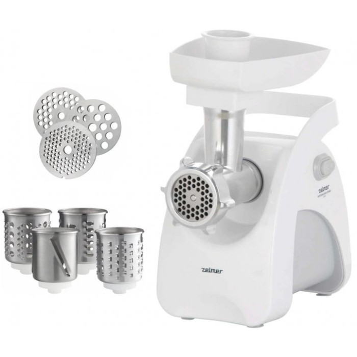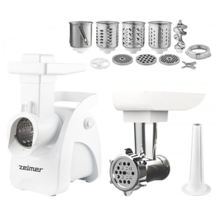 Достаточно мощная и многофункциональная электромясорубка для домашнего использования польского бренда Zelmer поможет вам сэкономить время и силы, потраченные на подготовку, и приготовить разные блюда – от мясных и рыбных котлет до соусов и салатов. Одно из главных преимуществ модели состоит в ее высокой производительности. Двигатель, достигающий при пиковой нагрузке мощности в 2200 Вт, и двусторонний нож из нержавеющей стали с острыми лезвиями позволяют перемолоть до 3 кг мяса всего за одну минуту.