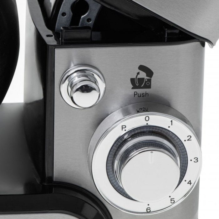 Максимальная мощность тестомеса составляет - 1800 Вт. Номинальная мощность - 1000 Вт. Чаша объемом - 5 литров из высококачественной нержавеющей стали. 6-ступенчатая регулировка скорости со светодиодной подсветкой, расположена на боковой панели.