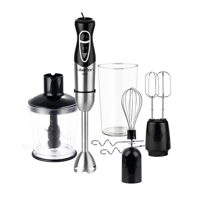комплектация: венчик для взбивания. мерный стакан (600 мл). чаша измельчителя (600 мл). насадка для замешивания теста. насадка миксер