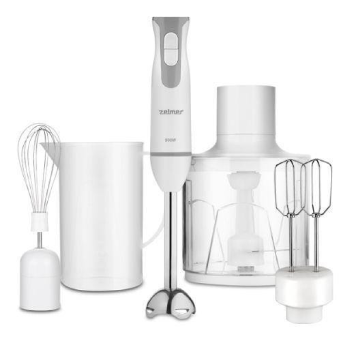 Блендери користуються заслуженою популярністю у домогосподарок різного віку, істотно полегшуючи процес приготування їжі. Вони призначені не тільки для подрібнення різних продуктів, але і для їх ретельного перемішування. Блендер Zelmer ZHB4553S прекрасно справляється з подібними завданнями і допоможе обробити провізію до потрібної консистенції. Погружной тип пристрою дозволяє йому змішати рідини в склянці або нарізати продукти в спеціальній ємності об'ємом 450 мл. 2 швидкості обертання ножа дають можливість вибрати оптимальний режим обробки продукту для отримання потрібного результату. Вінчик для збивання гарантує відмінний результат і незамінний для любителів випічки. Програма «турбо» стане в нагоді для переробки речовин підвищеної щільності (лід, горіхи) і зробить застосування виробу ще більш зручним і приємним. Стакан ємністю 800 мл забезпечений мірними поділками і служить не тільки чашею для збивання, але і вимірником інгредієнтів. Кнопки управління, вміщені на передній панелі ручки, прості у використанні і допоможуть міняти режим роботи пристрою одним рухом руки.