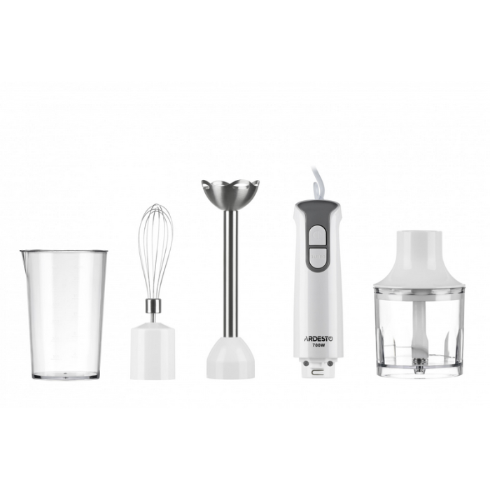 Ручной блендер погружного типа для быстрого измельчения ингредиентов и приготовления различных соусов и напитков. В комплектацию входят насадки для смешивания, измельчения и взбивания.