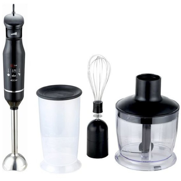 Істотною перевагою даної моделі блендера є регулювання потужності роботи за допомогою зміни сили натискання на кнопку управління, що дозволяє оптимально вибирати швидкість навіть для однієї страви на різних етапах його приготування. Блендер дозволяє приготувати навіть крихітний обсяг страв та краще контролювати консистенцію страви (для немовлят). Крім того, занурювальний блендер можна переміщати в ємності для приготування різними способами, залежно від того, що саме потрібно приготувати. У комплекті з блендером іде вінчик, який можна використовувати як міксер для приготування солодких страв (збивання вершків, кремів, приготування десертів, збивання яєць) та омлетів, а також розмішування рідкого тіста. Чаша для подрібнення використовується для подрібнення таких продуктів як м'ясо, горіхи, цибуля, твердий сир, варені яйця, часник, трави, сушений хліб.