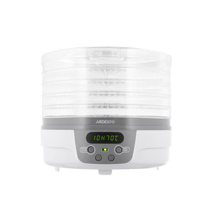 Сушарка для продуктів FDB-5321T. Колір: біла з сірою основою + прозора кришка та прозорі піддони. Захист від перегрівання. Регулювання температури. Рівномірне висушування на всіх рівнях. Збереження вітамінів та мінералів. Продукти для сушіння: овочі; ягоди; м'ясо; риба; хліб; гриби; зелень; трави.