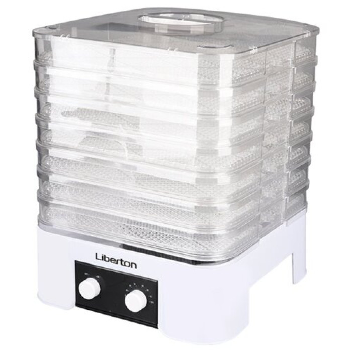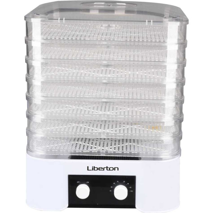 Сушарка для фруктів Liberton LFD-5521 — великого об'єму для сушіння овочів і фруктів 7 піддонами. За допомогою такого пристрою можна заготовити на зиму не тільки овочі і фрукти, а так само гриби, зелень, лікувальні трави і навіть м'ясо. Фруктова сушарка дозволить вашій родині отримувати всі необхідні вітаміни і мікроелементи навіть у зимовий час. Більш того, сушені овочі, фрукти, або зелень набагато зручніше зберігати, ніж консервовані або заморожені. Пропонована сушка має просте механічне управління і ергономічний дизайн. Температурний межа сушіння від 35 до 70 °