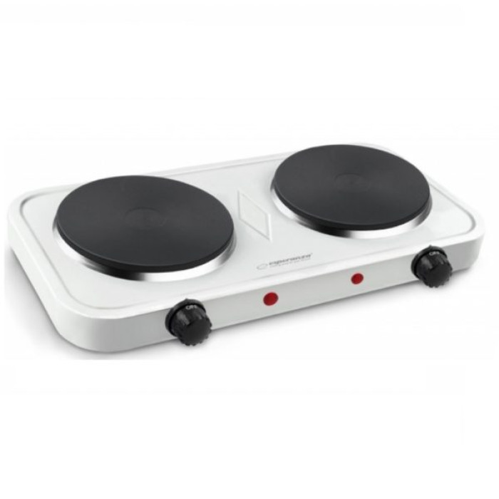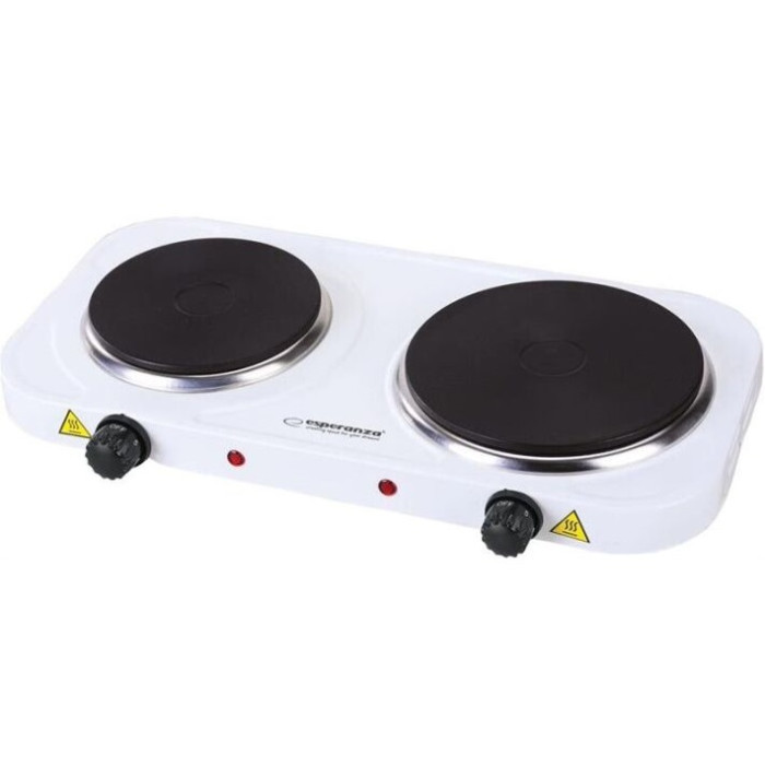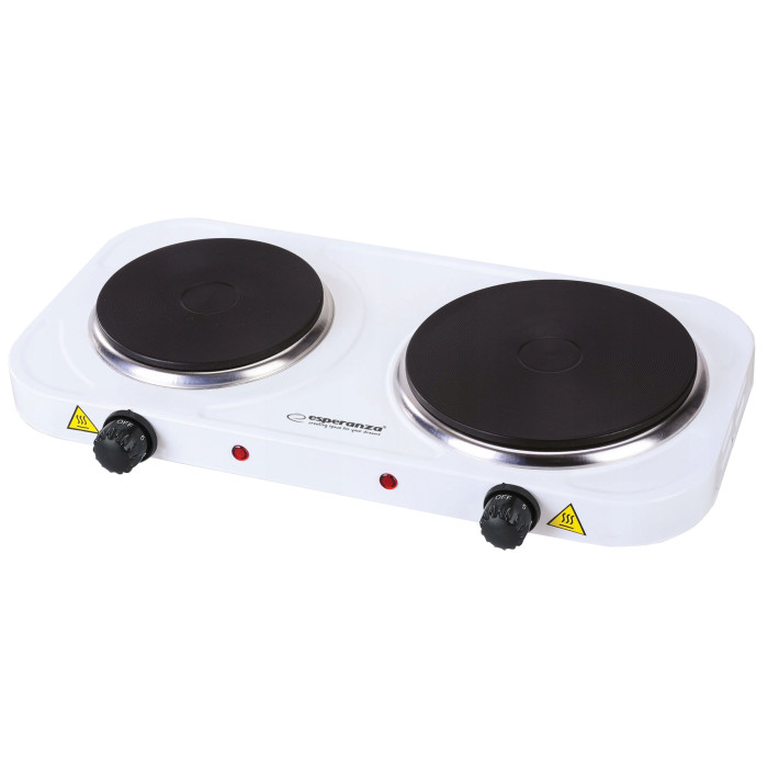Проста і недорога настільна двоконфорочна електрична плита. Пристрій цього типу може послужити відмінним придбанням для зовсім невеликої кухні, а також добре підійде для використання на дачі або невеликому заміському будинку, в який користувач приїжджати тільки час від часу. Відрізняється компактними розмірами (28х23 см) і надійною конструкцією. Її можна поставити на будь — яку поверхню-стіл, підставку, верхню частину кухонного шафки. Також варто відзначити максимально демократичну вартість плити Esperanza EKH007W і її простий дизайн. Виготовлена з якісної конструкційної сталі, захищеної термостійкою безпористою емаллю, поверхня якої легко очищається від усіх типів забруднень. Обладнана двома електричними пальниками різного діаметру і потужності — одна на 1 кВт і друга на 1,5 кВт. Регулювання потужності роботи кожної з пальників здійснюється надійними поворотними перемикачами.