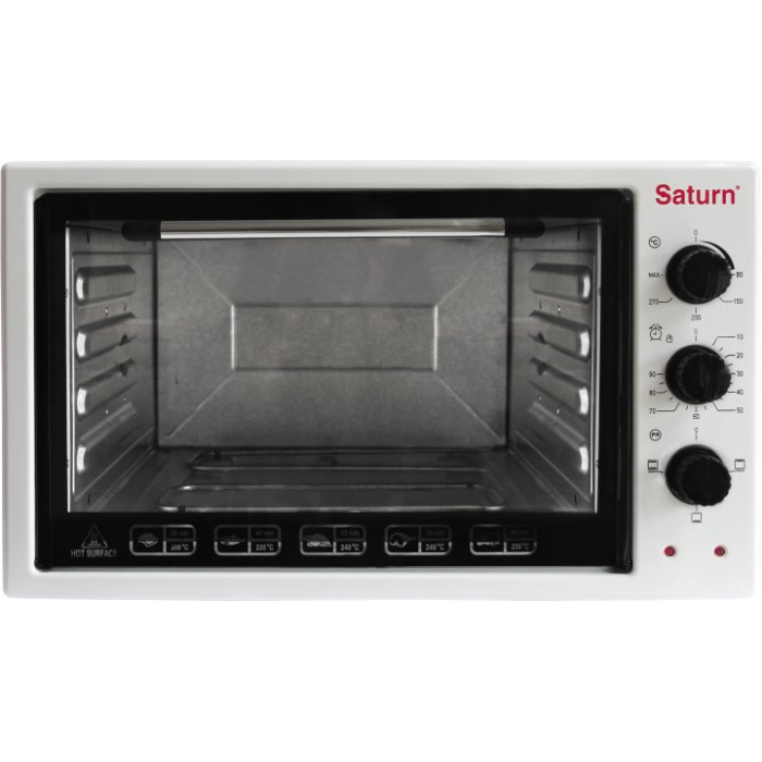 Если вам нужна функциональная и надежная духовка, то стоит обратить внимание на Saturn ST-EC3802, ведь с ее помощью вы сможете обрадовать себе и своих близких ароматной выпечкой, пиццей, запеканку и многим другим. Небольшой вес поможет без труда переставить его в нужное место, а объем 42 л отлично подойдет для большой родины.