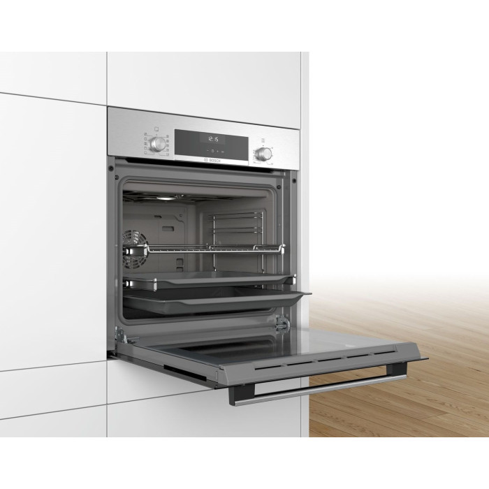 BOSCH HBJ558YSOQ- вбудована духова шафа зі спеціальною функцією гарячого повітря:ідеальні результати випічки і смаження на двох рівнях одночасно. Духовка має ідеальні результати завдяки оптимальному розподілу тепла на 2 рівнях одночасно. Клас Енергоефективності А:кращі результати випічки з мінімальними витратами енергії. Откидная двері:для особливого простого відкриття і закриття дверцят приладу. Мультифункціональна духовка має 7 режимів нагріву:верхній/нижній жар, нижній жар, 3D гаряче повітря Plus, гриль з конвекцією, Vari-гриль великої площі нагрівання, гриль малої площі нагрівання, розморожування. Також ви можете скористатися функцією швидкого розігріву. Також духову шафу оснащений вентилятором охолодження. Дверцята можливо демонтувати для зручності в чищенні.