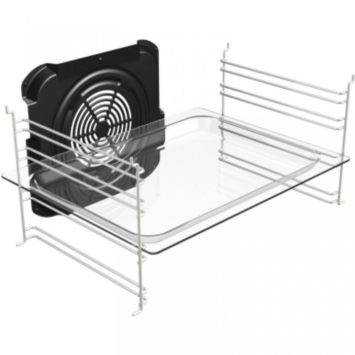 Духовка стала ще просторіше, а стелю більш склепінною, повторюючи конструкцію традиційної дров'яної печі. Повітря вільно циркулює, обволікає продукт з усіх боків, роблячи його ніжним і соковитим всередині і неймовірно хрустким зовні. У камері об'ємом 71 літр з утопленими бічними стінками повітря розподіляється ще краще, тому по всьому простору духовки підтримується однакова температура, що забезпечує рівномірний пропікання. Примусова циркуляції повітря створює професійні умови для приготування як на одному, так і на декількох рівнях одночасно.
