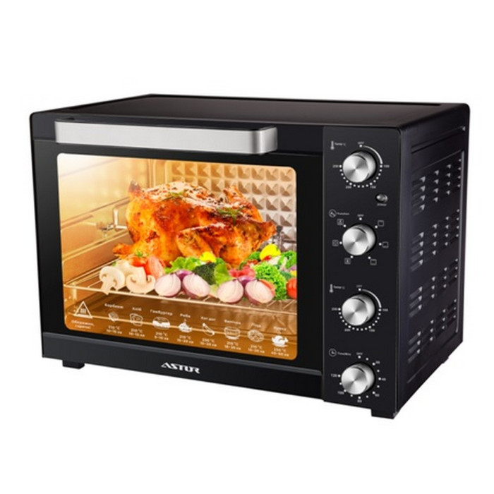 Мощная многофункциональная электрическая печь. Стильный современный дизайн, впишется в любом интерьере. Не нагревающаяся хромированная ручка на дверце.Быстрый нагрев до заданной температуры. Внутренний объем: 60 литров 4 уровня высоты установки противня/решетки Тип управления: механический Открытие дверцы: фронтальное .Дверца из прозрачного жаропрочного стекла . Световая индикация включения Конвекция обеспечит быстрое приготовление и хрустящую корочку Отдельное управление температуры верхнего и нижнего нагревательного элементов (100-250 ? С) Вертел Функция разогрева еды Функция разморозки Высокий уровень контроля необходимой температуры Технология Hotair: идеальные результаты благодаря оптимальному распределению тепла на 2 уровнях одновременно Рифленая задняя стенка стойкая к температурной деформации Таймер на 120 минут со звуковым сигналом и автоотключением 7 режимов работы