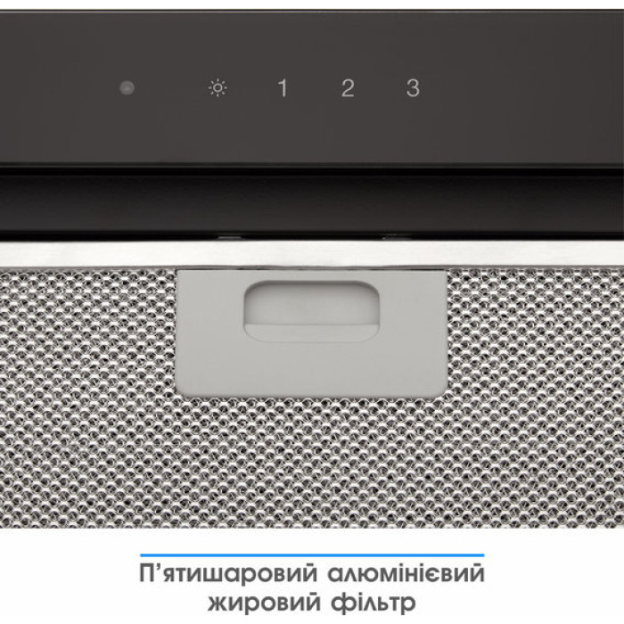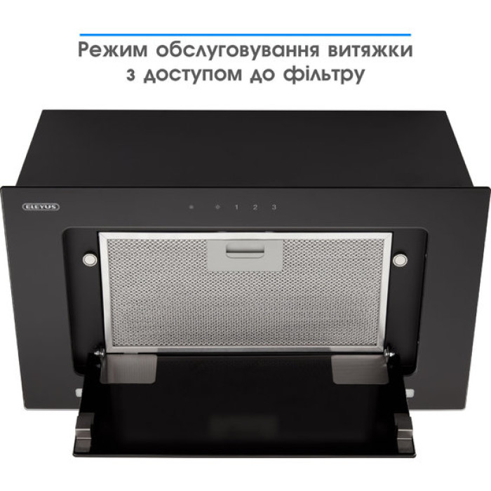 Повновбудовувана кухонна витяжка ELEYUS INTEGRA точно не залишить вас байдужими, адже вона не просто забезпечує ефективну очистку повітря від небажаних запахів, а є стильним і оригінальним рішенням для вашої кухні. Рішення інженерів-конструкторів дозволить повністю вбудувати ELEYUS INTEGRA 1200 LED SMD 52 в кухонну шафу, не впливаючи вагомо на дизайн кухні. Видимою залишається панель управління острівного типу з загартованого скла з дзеркальним ефектом, покрита високотемпературної керамічної фарбою, яка підкреслює лаконічність і елегантність інтер'єру.