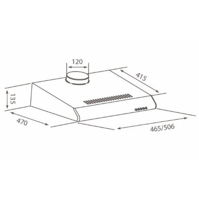 Вихід - коло діаметром 120 мм. Обладнана надійним механічним управлінням (кнопка), алюмінієвим фільтром, який дуже легко миється.