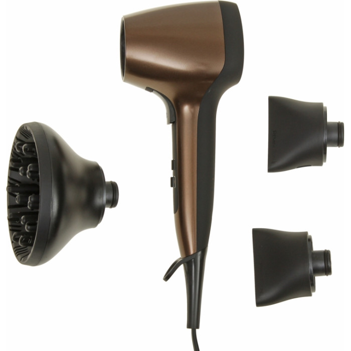 Приєднуйтесь до революції в укладанні волосся з нашим феном наступного покоління – AIR3D, розробленого для максимального стайлінгу, без теплового пошкодження волосся. Об'єднавши наш досвід з великими дослідженнями, ми створили фен, який поєднує в собі дві функції для ефективної сушки волосся. Завдяки унікальному тривимірному повітряному потоку і температур, що ідеально підходять для досягнення оптимальних результатів стайлінгу і моделювання *, AIR3D – ідеальний прилад для сушки волосся. Використовуючи іонну технологію кондиціонування волосся, фен AIR3D випускає негативні іони на волосся для блискучого стайлінгу, без сплутування волосся. Таким чином, ви можете насолоджуватися салонним рівнем укладання в домашніх умовах. З трьома настройками температури і двома швидкостями ви можете підібрати оптимальний режим для вашого типу волосся. Фен також володіє режимом "холодне повітря", який допоможе зафіксувати укладку і стиль. Зручна конструкція, ергономічна форма і легкий вага розроблені для вашої зручності, максимального комфорту і контролю за стайлингом. Салонний шнур, довжиною 3 метри, забезпечить повну свободу під час стайлінгу.