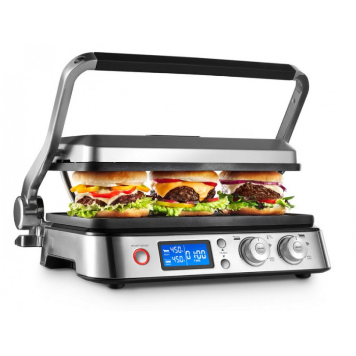 Притискної електрогриль Delonghi CGH 1030D стане справжньою знахідкою для любителів експериментувати з різноманітними рецептами і способами приготування продуктів. Delonghi CGH 1030D має дві незалежні пластини, при цьому розмір робочої поверхні становить 37х46 см. У даній моделі встановлений регульований термостат і є можливість вибору з 7 робочих режимів, що значно розширює її можливості. Додатковий комфорт в процесі експлуатації забезпечить електронний дисплей, антипригарне покриття, яке теж полегшить догляд за приладом, а також регульований термостат і піддон для збору соку. Варто звернути увагу і на високу якість виконання Delonghi CGH 1030D і ергономічний сучасний дизайн.