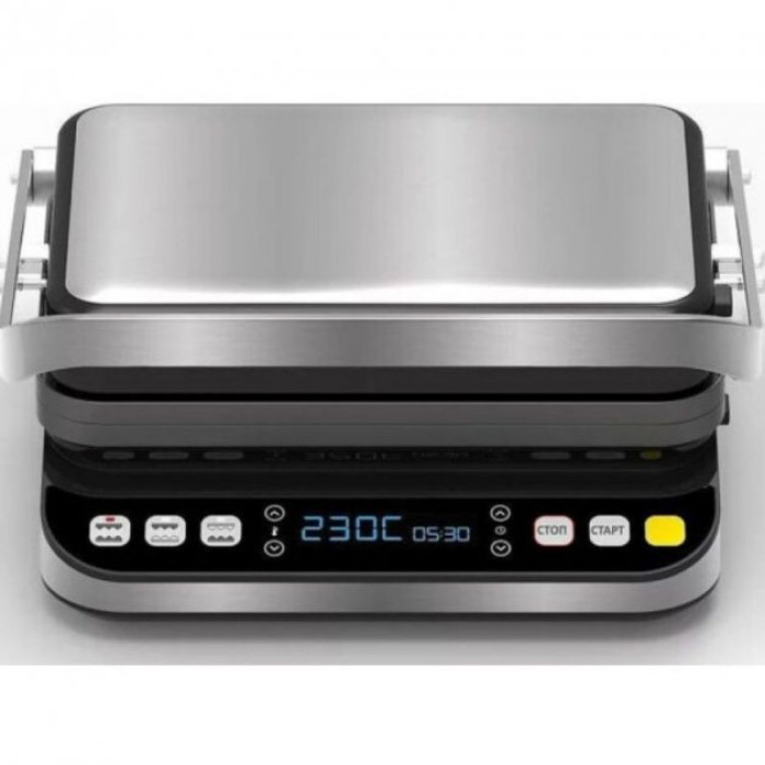 Тип: Электрогриль прижимной / Мощность, Вт: 2200 / Размеры поверхности, см: 26x29 см / Регулируемый термостат: есть / Антипригарное покрытие: есть / Тип управления: Электронное