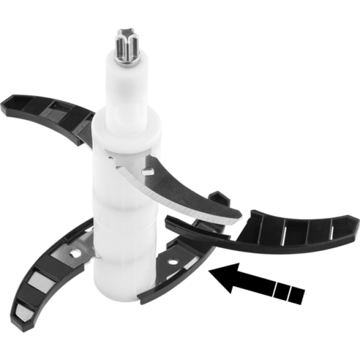 Конструкция лезвий S-образной формы позволяет эффективно измельчать сырые продукты