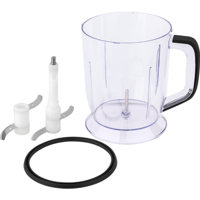 Большая устойчивая пластиковая чаша объемом 1,5 л подходит для измельчения большого количества ингредиентов