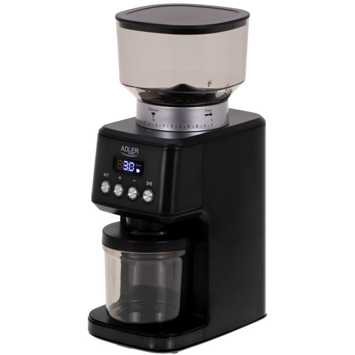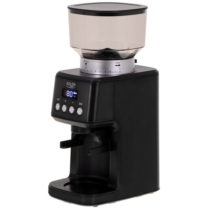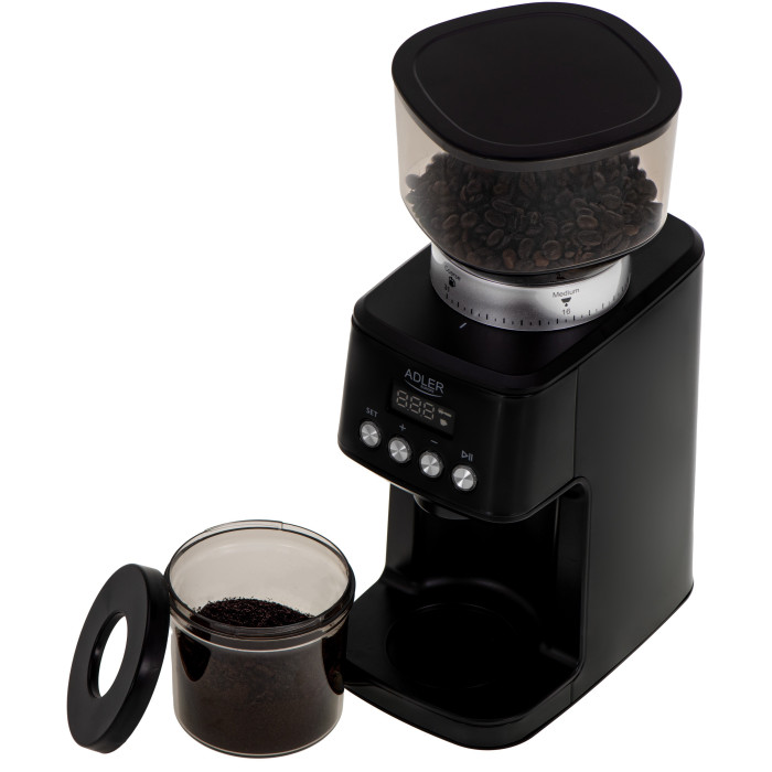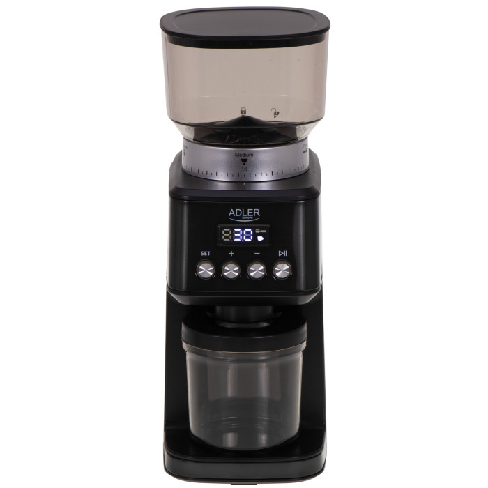 Вместительный бункер для зерен рассчитан на 300 г, а съемная чаша и отсек для молотого кофе упрощают очистку и эксплуатацию. Кофемолка Adler AD 4300 также оснащена таймером на 20 секунд и дисплеем, что позволяет точно дозировать объем помола и повторять нужный режим без дополнительной настройки. Пластиковый корпус делает устройство легким, при этом габариты 130×200×340 мм сохраняют компактность для размещения на кухонной поверхности. Эта модель подойдет тем, кто хочет сочетать удобство автоматизации с возможностью точной настройки помола для разных видов кофе.