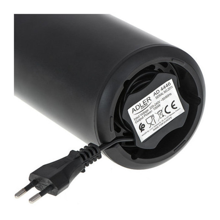 Кофемолка AD 4446 необходимо кухонным оборудованием для людей, которые ценят уникальный вкус кофе и не представляют без нее утренней, дневной перерыва на работе или вечерней встречи с друзьями. Измельчитель имеет емкость 75 г, поэтому позволяет измельчить идеальное количество кофе, чтобы она не потеряла своего аромата, он оснащен крышкой сохраняет аромат, благодаря чему молотый кофе можно использовать для нескольких человек. Максимальная мощность 150 Вт означает, что кофе будет быстро измельченная без необходимости долгого измельчения зерен.