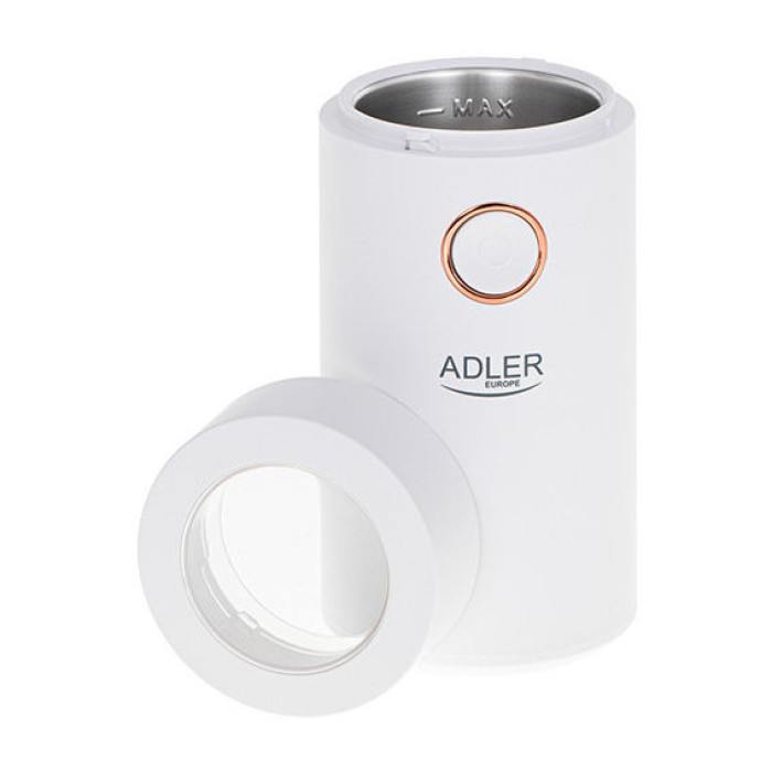 Кофемолка AD 4446 необходимо кухонным оборудованием для людей, которые ценят уникальный вкус кофе и не представляют без нее утренней, дневной перерыва на работе или вечерней встречи с друзьями. Измельчитель имеет емкость 75 г, поэтому позволяет измельчить идеальное количество кофе, чтобы она не потеряла своего аромата, он оснащен крышкой сохраняет аромат, благодаря чему молотый кофе можно использовать для нескольких человек. Максимальная мощность 150 Вт означает, что кофе будет быстро измельченная без необходимости долгого измельчения зерен.