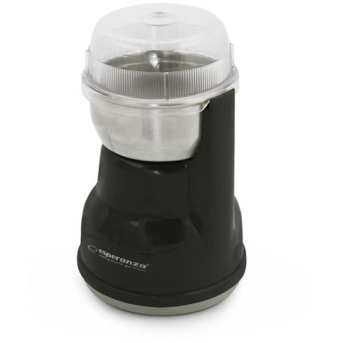 Її сучасний та ергономічний дизайн та невеликий розмір підійде для будь-якої кухні. Кавомолка Esperanza EKC002K Espresso виготовлена з міцних та зносостійких матеріалів. Корпус екопластик. Пластикова прозора кришка допоможе комфортно спостерігати процес помелу.