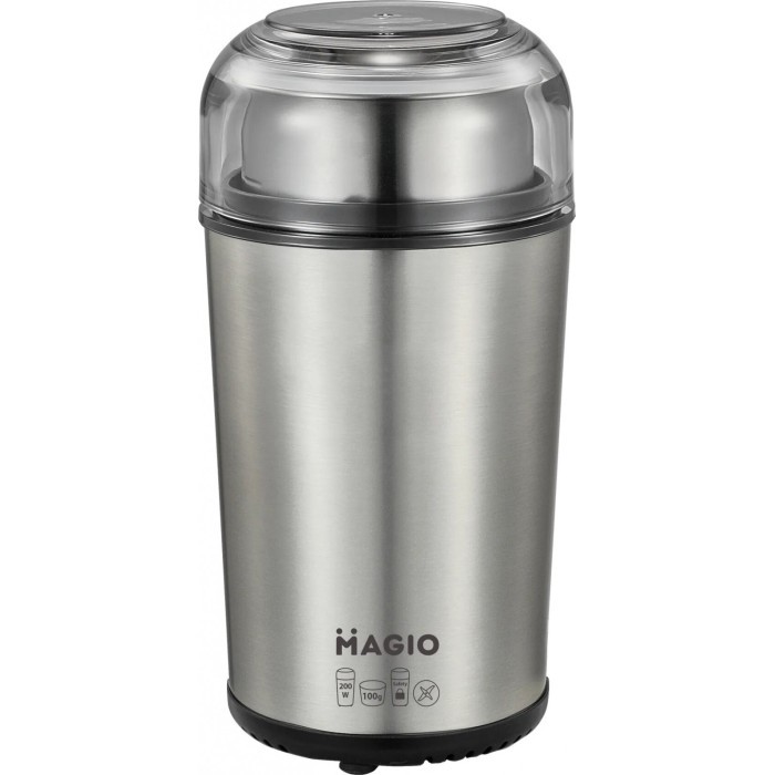 Класична побутова кавомолка з оптимальним поєднанням потужності, функціональності та зручності в експлуатації. Модель була представлена на ринку брендом Magio в 2023 році і створена з урахуванням потреб як початківців любителів кави, так і досвідченіших користувачів. Її ножовий механізм у поєднанні з імпульсним режимом дозволяє точніше контролювати ступінь помелу - від більшого, придатного для френч-пресу, до практично пилоподібного, необхідного для еспресо-машин.
