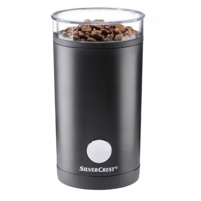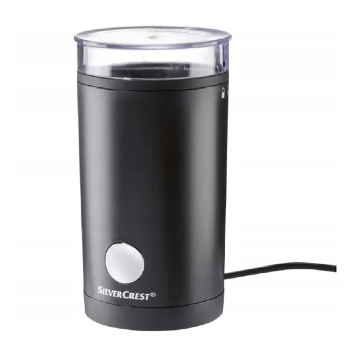 Silver Crest SKME 180 C1 – класична кавомолка, яка має низку цікавих особливостей. У конструкції застосовується ніж, він чудово справляється зі своїми завданнями, подрібнюючи вихідний матеріал до дрібної фракції. Остання може змінюватись в залежності від тривалості впливу на клавішу пуску. Апарат захищений від випадкового запуску, якщо кришка відкрита. Контейнер для порошку вміщує 70 г, цього достатньо для 10 чашок завареного напою. Підходить для помелу не тільки кави, а й волоських горіхів, злаків, насіння маку та спецій. Протиковзкі опори знижують вібрації і покращують контакт з поверхнею.