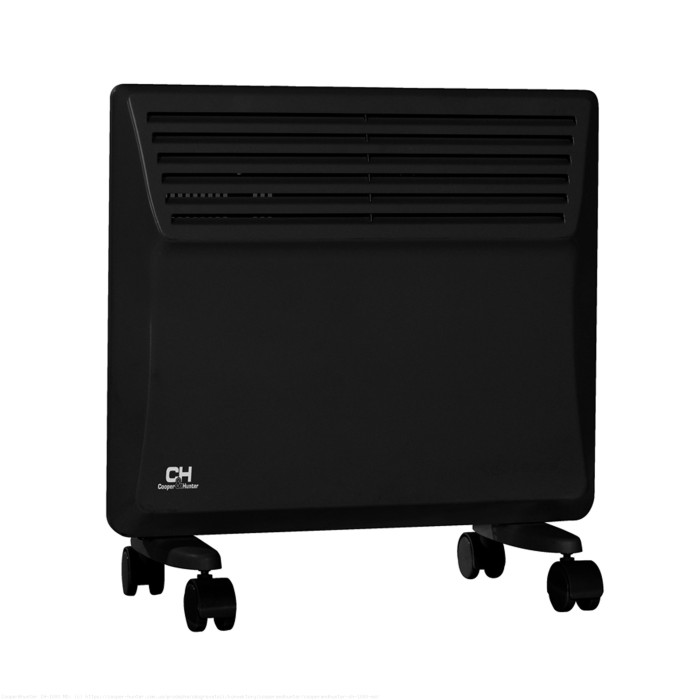 Обогреватель Cooper&Hunter Domestic Black CH-1000 ED изготавливается в стильном чёрном цвете. Специально разработанная форма его корпуса способствует ускорению конвекции тёплого воздуха, которая дополнительно усиливается системой тепловых экранов. Модель рекомендуется для комнат площадью до 15 кв.м и устанавливается двумя способами. В первом к ней присоединяются композитные ножки с колёсиками, чтобы свободно перемещать в нужное место. Во втором случае устройство стационарно монтируется на стену. Детали для обоих вариантов входят в комплект поставки. Нагрев производится цельнолитым Х-образным ребристым элементом, мощностью 1 кВт, из сплава алюминия. Обогреватель Cooper&Hunter Domestic Black CH-1000 ED функционирует в двух режимах: полной и половинной мощности (0,5 кВт). Управляется он посредством электронной панели с LED дисплеем и 24-часовым таймером. Разработчики предусмотрели защиту от перегрева, замерзания, опрокидывания, пыли и влаги, а также от ожогов.