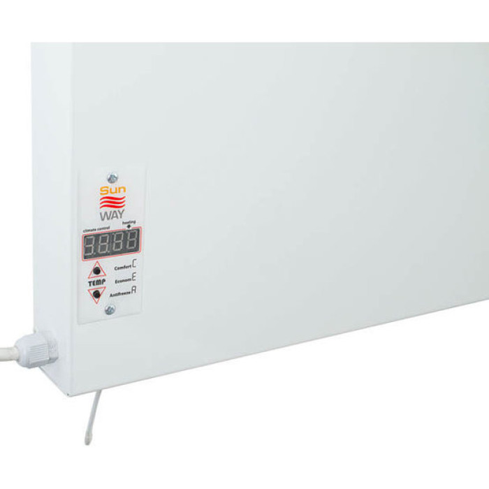 Внутри панели по мимо нагревательного элемента ( нихромовой нити ) расположена керамическая плита, которая нагревается до 120 градусов Цельсия и подает теплые потоки воздуха вверх через специальные отверстия.