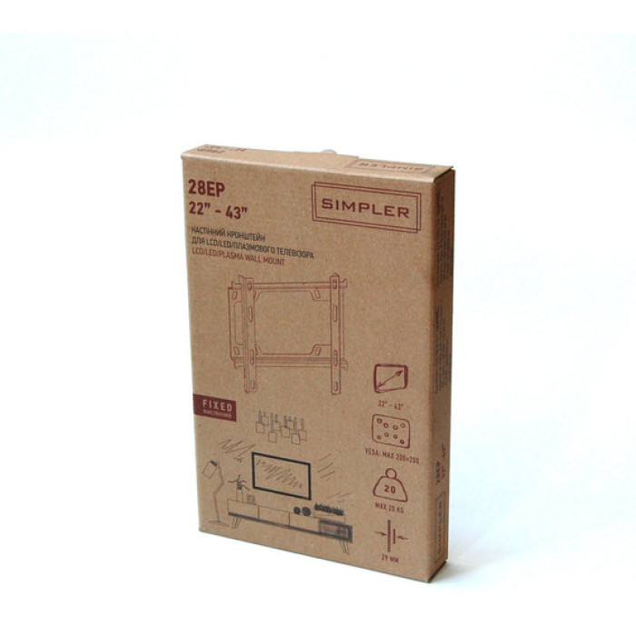 Кронштейн подходит для плазменных, LCD, LED телевизоров и мониторов с диагональю 19-43 дюйма и весом до 20 кг.