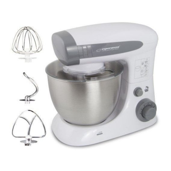 Тістоміс-міксер Esperanza Cooking Assistant EKM024 передбачає електронне налаштування швидкості, забезпечений високоякісними та довговічними компонентами, має велику потужність на рівні 800 Вт. Серед інших особливостей цієї моделі сріблястого кольору можна виділити планетарний рух змішувачів, зроблять повітряними масами, які будуть збагачені киснем, наявність міцної чаші з нержавійки об'ємом 4 л. Щодо самої експлуатації, зручність у щоденному обігу та невибагливість у догляді будуть забезпечені. Товар розрахований на одноразовий заміс тесту масою не більше 2 кг.
