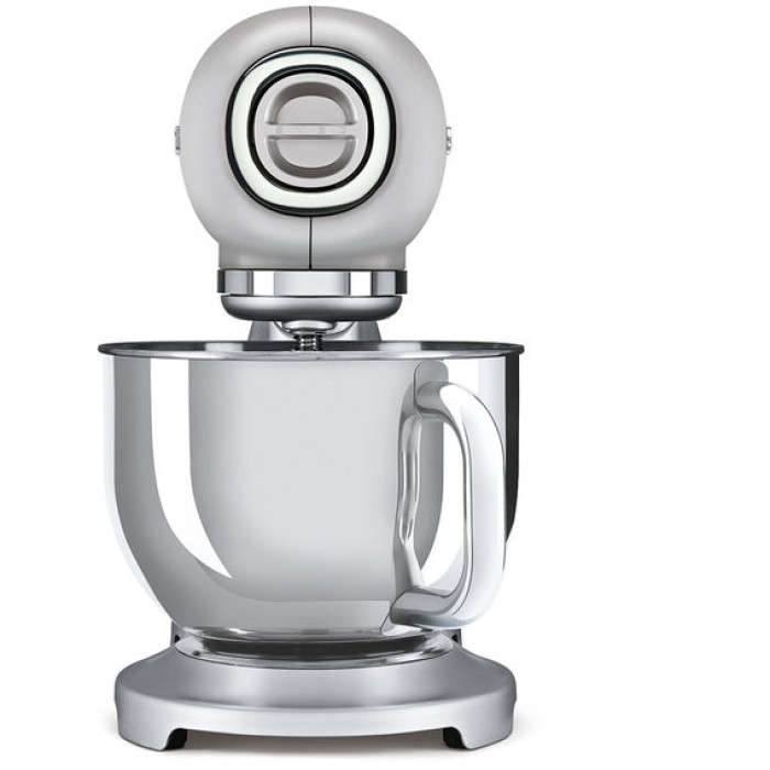 Планетарний міксер Smeg SMF02SVEU призначений для збивання кремів, мусів, а також для приготування пюре, соусів та коктейлів у приватних будинках та квартирах. Модель виконана у стилі 50-х років. Корпус виготовлений з литого алюмінію, шестерні - із загартованої сталі.
